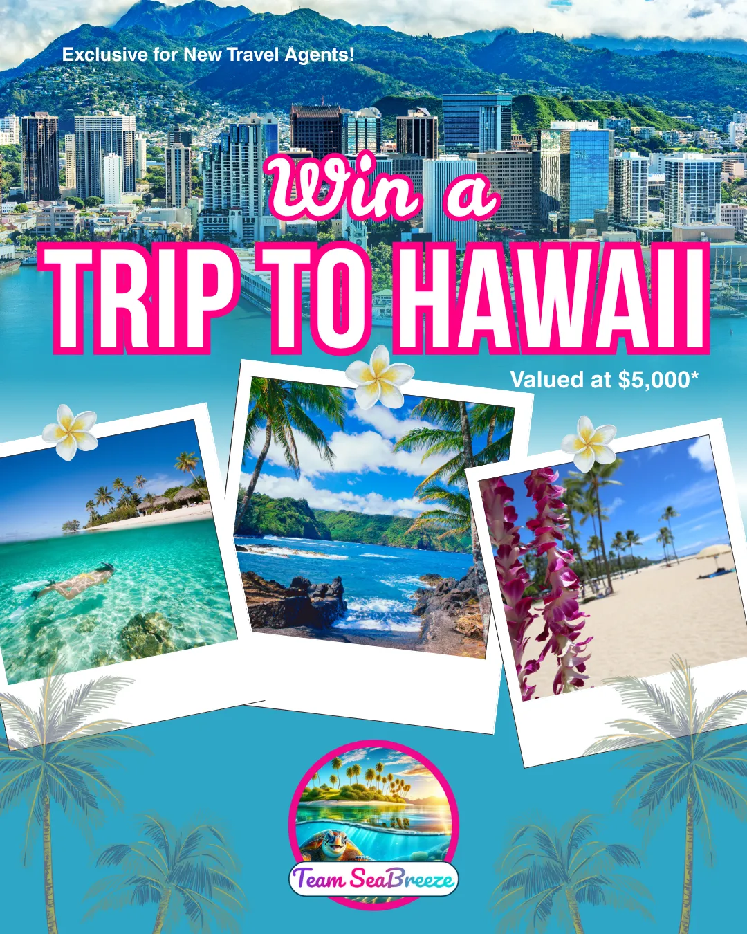 When you join Team SeaBreeze, you’re not just starting a travel career — you’re stepping into a world of rewards! Every new travel agent is automatically entered into our monthly drawing for a $5,000 Hawaii Vacation Voucher for you and a guest. 🌴